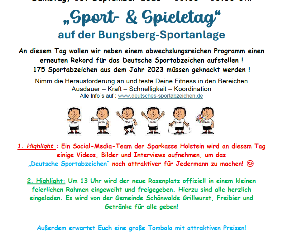 SAVE THE DATE Am Samstag, den 13. September 2025 startet wieder unser „Sport- & Spieletag“ auf der Bungsberg-Sportanlage. An diesem Tag wollen wir einen erneuten Rekord […]