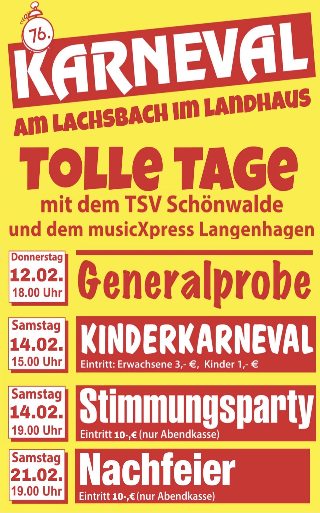 Am Lachsbach im Landhaus Tolle Tage mit dem TSV Schönwalde und dem musicXpress Langenhagen Eintritt: Erwachsene 3,- €, Kinder 1,- €